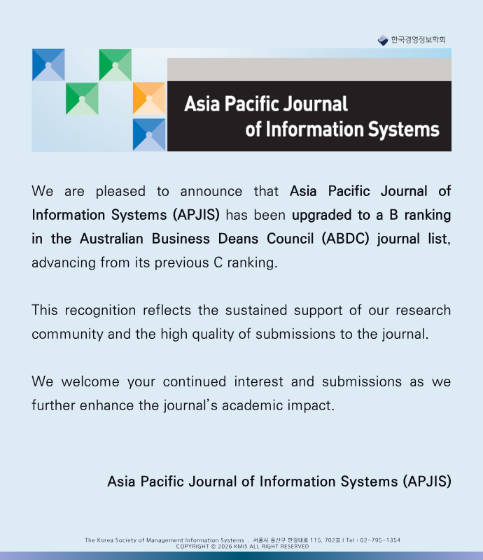Asia Pacific Journal of Information Systems (APJIS), a Scopus and ABDC indexed journal, is a